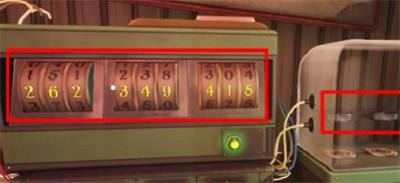 3、进入房间完成探索,启动桌上装置,旋转底部按钮将右侧的三款悬浮的磁片高度一致,获得数字密码【262、349、415】;