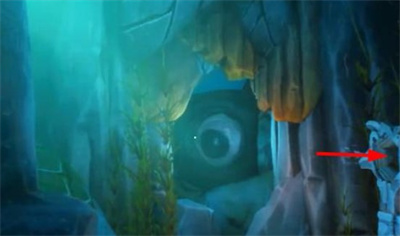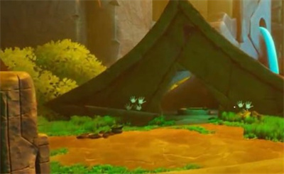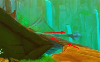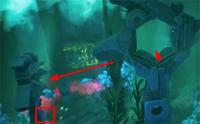 3、一直往里游,到尽头向上移动,还会遇到手印机关,回到现实到三角形的建筑,在壁画旁有一个入口;