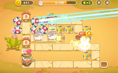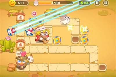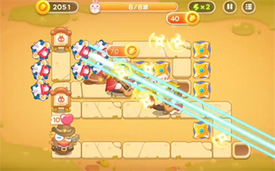 3.兔子优先从上方走,所以在障碍物清理完后优先把炮塔建在可以攻击到上方的位置。