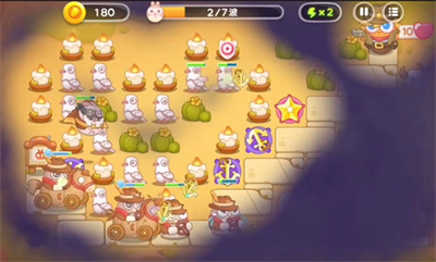 3.下方位置放船锚就可以,直接摆一排,在终点附近加几个星星塔。