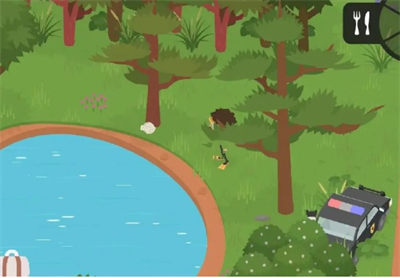 海岛上,需要炸药的一只鸭子旁的池塘旁边。