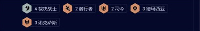 4裁决战士、2潜行者、2司令、3德玛西亚、3诺克萨斯。