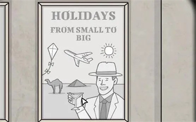 2.将墙上的画按照酒杯-帽子-风筝-骆驼-飞机- 金字塔-太阳的顺序点击获得钥匙。