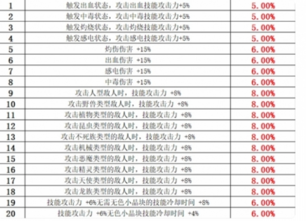 3.技能攻击力+6%无色小品块技能冷却时间+4%。