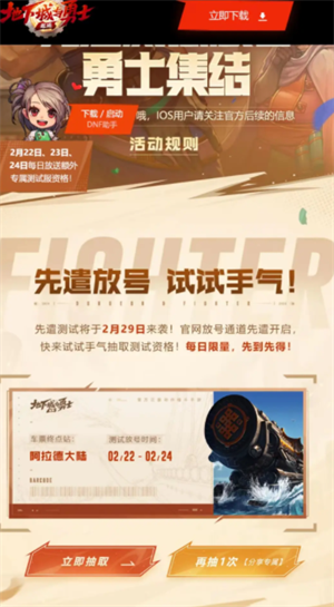 1、玩家点击上方的地址链接即可进入dnf先遣服官方地址;
