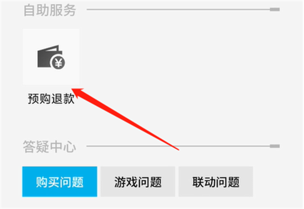 3、进入该游戏页面,选择自主服务中的【预购退款】;