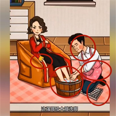 1.在场景中找到巴掌印、围裙、膝盖下的键盘、以及洗脚。