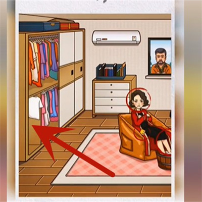 5.移动画面回来就可以看到一个男人,向左移动画面找到衣柜中的白色短袖即可。
