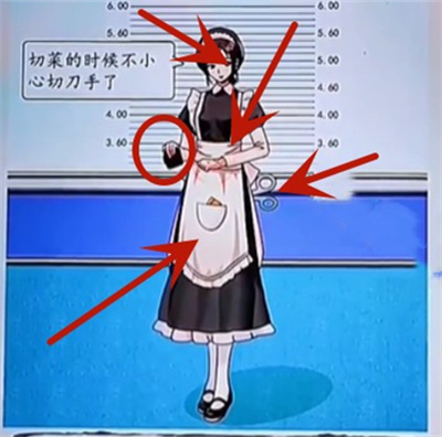6.找到女仆手里的钱包,手上的伤口,耳朵上的耳环以及身上的剪刀和口袋的照片。