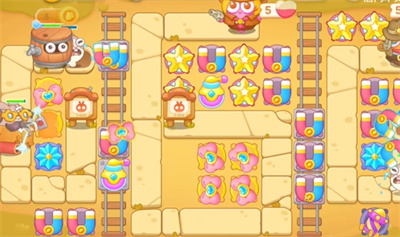 3.中间的障碍物空出来后摆放星星,中下方放置蝴蝶结。