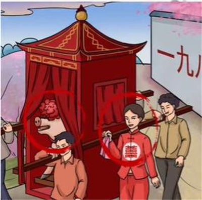 2.抬轿子的有一个是男伴娘,里面做的是猪新娘。