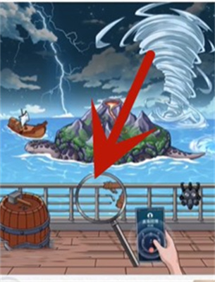 3.使用放大镜查看远处的船和章鱼。