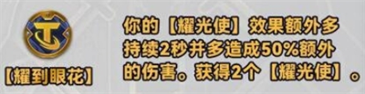 你的耀光使效果额外多持续2秒并多造成50%额外的伤害,获得2个耀光使。
