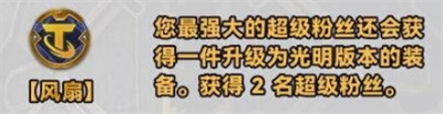 您最强大的超级粉丝还会获得一件升级为光明版本的装备,获得2名超级粉丝。