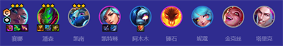 赛娜、潘森、凯南、凯特琳、阿木木、锤石、妮蔻、金克丝、塔里克