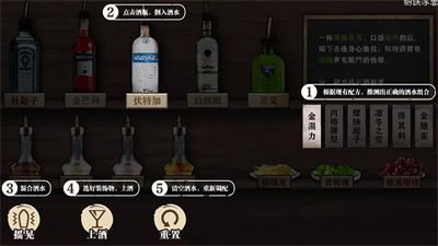 2.按照规定调配出一杯清爽清香口味清澈的酒。