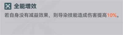 假如自身没有减益效果,则染导技能造成的伤害提升10%。