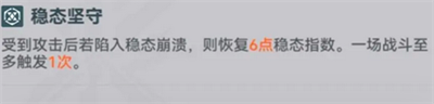 受到攻击后若陷入稳态崩溃,则恢复6点稳态指数,一场战斗最多触发1次。