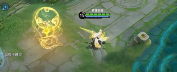 释放一个往前冲的金色箭头,原身会留下金色粒子光效影子。