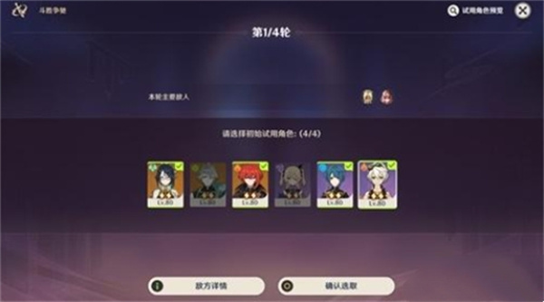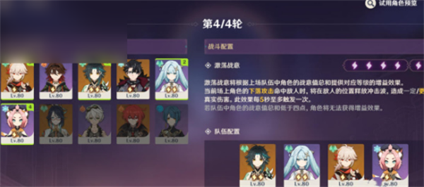原神4.4斗胜争驰第二关怎么过,在《原神》4.4版本中,上线了全新的角色和活动,在原神4.4斗胜争驰第二关中,我们需要进行四轮战斗,选择不同的试用角色,主要增益可以通过下落攻击来触发。一起来看看吧。