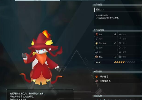 帕鲁伙伴技能:狐神大人:与它并肩作战时,它会为玩家的攻击赋予火属性。