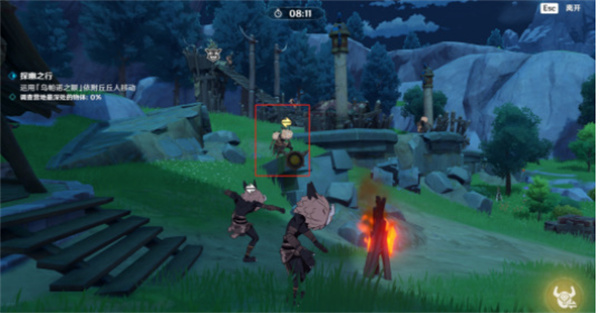 移动过程中注意前面的萨满,别被发现了,移动过去之后快速点击释放迷雾干扰萨满的视线,紧接着立马移动到下一个丘丘人;